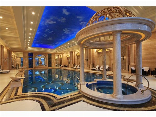 整個(gè)洗浴會所設(shè)計(jì)區(qū)域共三層,首層包含大堂,中餐廳,等;二層包含中餐VIP包廂,棋牌室,SPA等;及地下一層的游泳池、健身房,男女更衣室,瑜伽房,酒窖,品酒區(qū),雪茄吧等。其中,尤以大堂、中餐廳和地下游泳池、酒窖極富特色。大堂擁有雙層挑空層,層高達(dá)10米,佇立其間,讓人感受到空曠、偉岸以 及古典與現(xiàn)代的碰撞;中餐廳共分為兩層,主廳及貴賓房設(shè)在一層,自助責(zé)賓房與多功能廳設(shè)在二層,處處以濃厚的現(xiàn)代氣息體現(xiàn)中國的傳統(tǒng)文化元素;游泳池位于會所地下一層的康樂中心,藍(lán)天白云的天花設(shè) 計(jì)與池底深淺漸變的藍(lán)色馬賽克呼應(yīng)成趣,拼成一幅優(yōu)美的畫卷,透射的陽光將整個(gè)池面折射出一個(gè)水波蕩漾的動態(tài)畫面,自然充足的采光效果,猶如回歸英國的羅馬池,令人舒暢愜意;600余平方米的地下酒害,存儲空間在同等項(xiàng)目中是極為罕見的。在洗浴會所設(shè)計(jì)公司精心的塑造下,每個(gè)角落都煥發(fā)生機(jī),讓人體味帝王般的奢華享受。