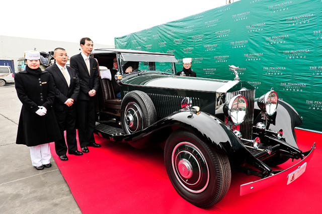 上海半島酒店豪華車隊(duì)擁有2輛定制的加長(zhǎng)勞斯萊斯幻影、6輛半島特別版的寶馬一系,今年還將新增1輛1934年版的古董勞斯萊斯幻影,這些車輛都以標(biāo)志性的半島綠呈現(xiàn)給賓客。