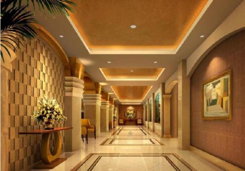 通過(guò)頂面吊頂形式體現(xiàn)大廳空間的整體效果。問(wèn)題是吊頂應(yīng)該吊到什么高度比較合適,當(dāng)然這有許多限定因素。比如,頂面結(jié)構(gòu)高度、管線所占空間高度,人的生理舒適度對(duì)凈空的最低要求等。然而還有一個(gè)更重要的設(shè)計(jì)因素就是空間的尺度問(wèn)題。對(duì)這個(gè)問(wèn)題的把握不能簡(jiǎn)單地以吊頂?shù)某叽鐏?lái)回答,完全是一種對(duì)空間感的體驗(yàn)。而進(jìn)行酒店設(shè)計(jì)時(shí),在很大程度上取決于設(shè)計(jì)公司個(gè)人對(duì)尺度把握的經(jīng)驗(yàn)。