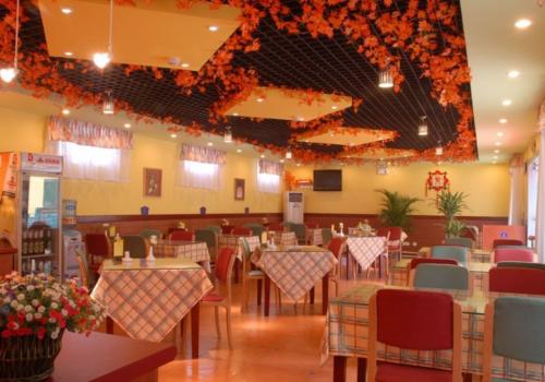 要用一個底面從周圍地面中限定出一個空間來,這個底面必須在圖形上比較特殊,例如以一種特別的圖案顯示出與周圍地面的不同,或者在色彩上、質(zhì)感上有別于四周地面,這個底面便從周圍地面中限定出一個特定的餐廳設(shè)計空間范圍,這個底面其圖形的邊界輪廓及圖案越清晰,或與周圍地面的色彩及質(zhì)感對比越明顯,它所限定的空間范圍就表達(dá)得越明確。這種手法常用來在餐飲建筑設(shè)計中,以不同材質(zhì)的地面來劃分就餐空間與交通空間,劃分吧臺與咖啡座,或劃分其他不同的餐飲空間。也常在餐廳地面中央做一特別圖案,以顯示所限定出的中間空間的顯要或矚目,例如供卡拉OK廳作舞池用,或突出餐廳中的重要就餐空間等。
