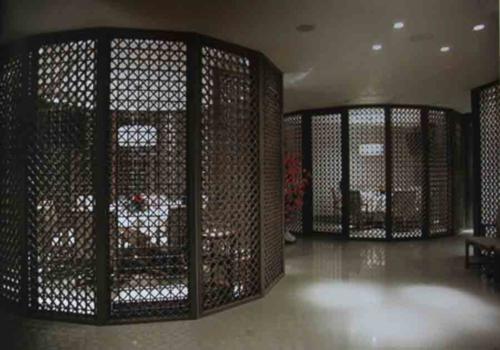 大面積的菱形和方形木格相互疊加,好比古人的空靈加上現(xiàn)代人的理性,空間因此而變得虛實(shí)和模糊,安靜和豐富。但無論是瓷盤、銅馬、石橋,還是木格窗花,都在中國古典形式的基礎(chǔ)上進(jìn)行了抽象和簡化,賦予它們以純粹的時(shí)代感,并且具有了一種含蓄的張力--不露鋒芒,耐人尋味。