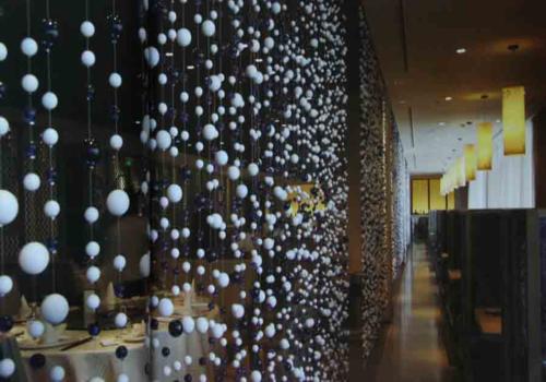 該店沿襲了俏江南新中式的設(shè)計(jì)風(fēng)格,店內(nèi)飾品大多以木材、瓷器、絲綢等為材料,大量采用隔窗、珠簾、瓷馬等極具中國特色的元素打底鋪色,并在傳統(tǒng)的背景下演繹出當(dāng)代中國的價(jià)值觀,賦予了整個(gè)空間的獨(dú)特人文氣質(zhì)。
