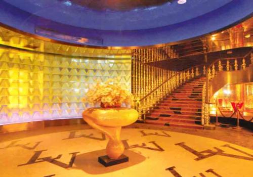 墻體花紋讓你說不出是什么感覺,安靜、古典、華麗,好像它全都具有。拋光磚、水晶制品、不銹鋼、玻璃鋼制品、黑鏡玻璃等制品加強(qiáng)了燈光的強(qiáng)力,讓你一直處在燈火通明的時(shí)刻,好像沒有夜晚和黑暗。