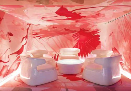 您現(xiàn)在所在的位置:首頁>設(shè)計(jì)風(fēng)向標(biāo)>正文水晶酒吧位于香港中環(huán)一座高層建筑的九樓,是帶你進(jìn)入另一個(gè)夢幻世界的跳板。酒吧設(shè)計(jì)出自Katrin?。希欤椋睿嶂郑幻麃碜员鶏u的設(shè)計(jì)師兼藝術(shù)家,她因時(shí)尚的插畫風(fēng)格、多層次空間想象以及獨(dú)特的夢幻空間布置而享譽(yù)全球。