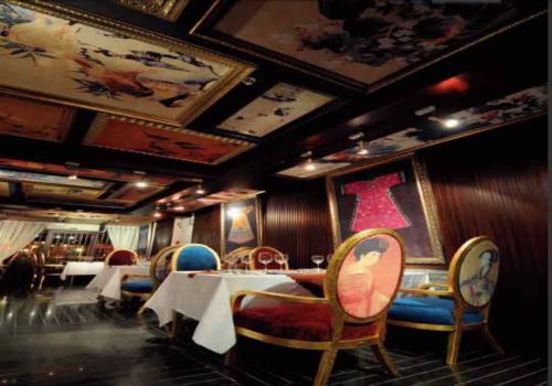 為體現(xiàn)“青紅”含義,本案由餐廳設(shè)計(jì)公司自己進(jìn)行軟裝飾和安裝。我們采用二十四款寬窄不的歐式畫框鑲嵌起近百幅仿真中國(guó)歷朝歷代的珍貴丹青(原作如今收藏在全球各大博物館內(nèi)),以花鳥主題為主,展示在西餐廳的納西房頂上,讓人總是不禁抬頭仰望。