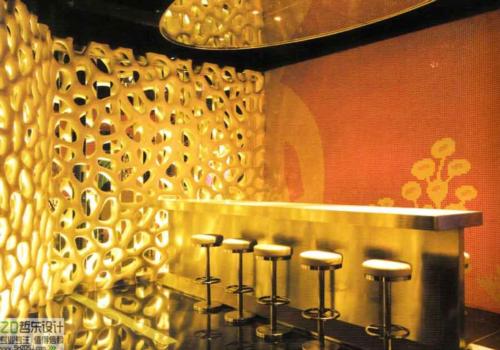 麗人吧四面環(huán)繞著珊瑚形玻璃鋼,鏤空的設(shè)計(jì)既有設(shè)計(jì)感又不阻擋視線,在LED燈的照射下,透出一股獨(dú)特的風(fēng)采。