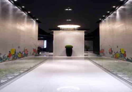 設(shè)計(jì)師把墻體、家俱、飾物的變化作為“實(shí)”,而頂部(尤其公共部分)作為“虛”。墻面色彩、材質(zhì)的反差強(qiáng)對(duì)比。極為干凈的白色和純凈深遂的黑色、壁紙的中性色、其間點(diǎn)綴的飾品追求一種中國(guó)水墨大寫意的感覺(jué),手法簡(jiǎn)約、干練,加上3。9M的凈高的尺度,體現(xiàn)出大氣之雅;將牡丹的圖案作為素材出現(xiàn)在門廳入口兩面4M高的銀箔墻面及散臺(tái)區(qū)頂部由光纖燈構(gòu)成的綻放的牡丹花光纖燈中;洛陽(yáng)出土的唐代陶俑及青銅器被精心的安排在不同使用的空間,使傳統(tǒng)地域文化與現(xiàn)代簡(jiǎn)約空間有著默契的對(duì)話與交融。