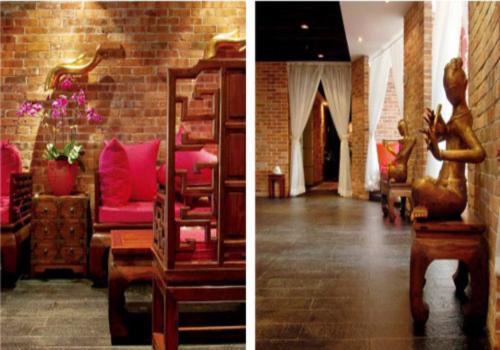 陶.會所所處位置充滿小資情調(diào)。一棟讓人心生愉悅的兩層樓面,自然古樸與簡潔時尚完美結(jié)合,拒絕了生硬的金屬感所帶來的奢華,陶罐、土磚、木制的扶手和整墻的佛面浮雕……