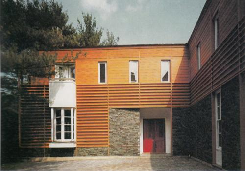 別墅設(shè)計公司介紹,該別墅基地5.2公頃,林木茂密,地形復(fù)雜。業(yè)主是一個年輕的四口之家,建筑以L形平面布局,同時結(jié)合院墻圍合成強烈的矩形院落。