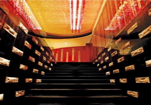 美容院設(shè)計效果圖,樓梯的暗調(diào)與頂棚燈光形成強烈的對比,