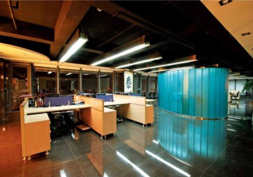 該辦公室設(shè)計空間規(guī)劃開放,流動,通過對幾何形體的拆解、重構(gòu),以透明/半透明材質(zhì)的輕靈、弧線線條的韻律,尋求種空間的可能性、延伸性,既滿足無限的想象力,同時也是企業(yè)的創(chuàng)造力。除固定單獨隔間(老總、財會室等)外,均為敞開區(qū)域布置。