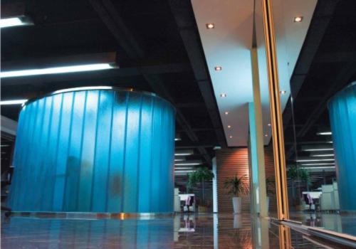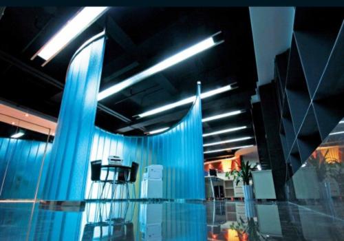 由U型玻璃圍合之下的單獨設(shè)置的復(fù)印機(jī)等辦公設(shè)備也散發(fā)出來了絲絲藝術(shù)氣息。