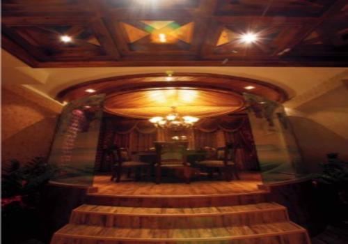 該會(huì)所設(shè)計(jì),在大廳中央,放置了個(gè)展示柜,使空間看起來(lái)豐富卻不顯得擁擠。大廳的盡頭,也用木質(zhì)材料圍成了間品酒室,品酒室的墻面和木質(zhì)的地板協(xié)調(diào)致,它還是一個(gè)陳設(shè)品酒器具的展示臺(tái),晶瑩剔透的高腳杯透過(guò)透明的玻璃,向前來(lái)的客人傳達(dá)一個(gè)美好的訊息-歡迎來(lái)這里。