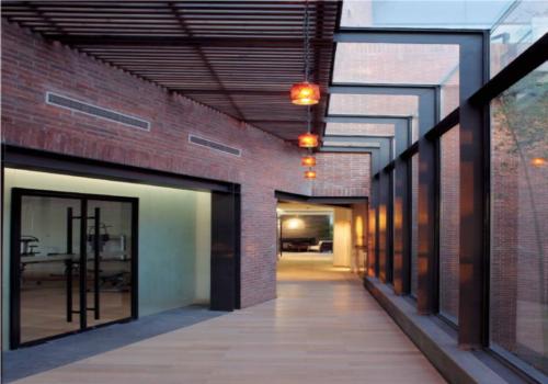該會所走道設(shè)計,由圖可以明顯的看出此會所建筑是并不規(guī)則,而設(shè)計師利用“柳暗花明又一村”的意境,極有創(chuàng)意的改變空間的這一缺點!