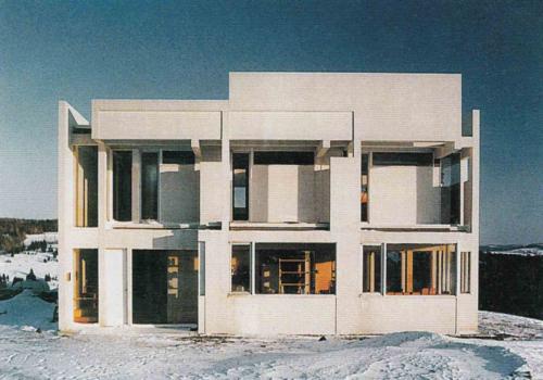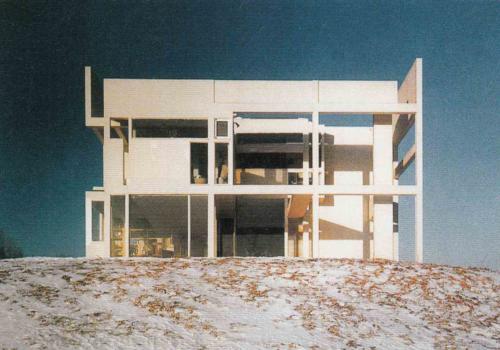 他從“功能產(chǎn)生形式”、“含義產(chǎn)生形式”演繹出“形式邏輯產(chǎn)生形式”,他認(rèn)為形式和形式的誕生是對某種形式關(guān)系的固有邏輯認(rèn)識的結(jié)果。他運用喬姆斯基的語言學(xué)理論,建立了自己的建筑語法學(xué),他借鑒語法結(jié)構(gòu)的理論,借助抽象的結(jié)構(gòu)關(guān)系,并運用文法和句法的概念,結(jié)合建筑符號進(jìn)行建筑設(shè)計、表達(dá)設(shè)計理念。他在“卡片住宅”中以其較少的體量、較少的質(zhì)感和色彩,表達(dá)了抽象的設(shè)計概念和方法。他將各種建筑構(gòu)造要素——梁、柱、墻等作為詞語,以線、面、容積三種原型系統(tǒng)構(gòu)成體系,根據(jù)特定的語言法則,由原型系統(tǒng)的演繹與組合形成建筑形態(tài)。