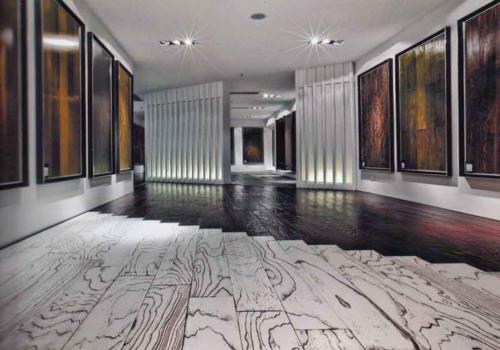 您現(xiàn)在所在的位置:首頁>會(huì)所設(shè)計(jì)>正文設(shè)計(jì)師放棄常規(guī)的木地板展示廳布置方式,把少量的地板花濃重的筆墨用在整個(gè)展廳80%的空間,其余20%的空間作為產(chǎn)品種類的展示,而且這大量的地板款式被安排在了不起眼的后部空間。