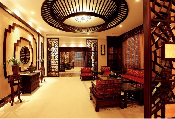 美容院設計效果圖,一個中式風格的美容院空間設計。