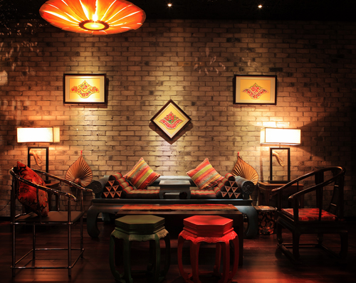 空間雖然充滿深邃穩(wěn)重的氣息,但是也不乏色彩的旋律。在沉穩(wěn)的黑色中設(shè)計師很大膽的用鮮艷的色彩,整個空間猶如一幅大型潑墨山水,氣勢磅礴。