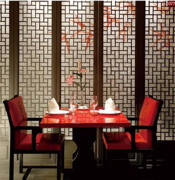 在現(xiàn)代設(shè)計中最具有代表性的中國傳統(tǒng)色彩莫過于紅色,它代表的是中國人的熱情、熱血和鮮明的特性。我國古代木建筑中最高等級的、流傳至今的宮殿建筑,就以紅、黃二色為主色,它深深影響了傳統(tǒng)色彩在現(xiàn)代室內(nèi)設(shè)計中的運(yùn)用。即便是現(xiàn)在,吉慶日子到處張燈結(jié)彩,燈是掛的紅燈籠,彩結(jié)是的紅彩綢。餐廳設(shè)計公司設(shè)計師舉例說,例如,餐廳中大面積的紅桌布、紅座椅等仍然是喜慶的象征。