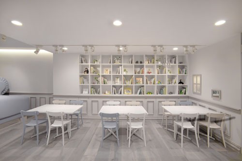 在兒童教育問(wèn)題上,日本算是獨(dú)有建樹(shù),目前也正在宣傳新的兒童教育理念——兒童社會(huì)性教育。在日本,無(wú)論在幼兒園還是在社區(qū)教育機(jī)構(gòu),目前的重心都放在培養(yǎng)兒童的社會(huì)性教育、培養(yǎng)兒童個(gè)人融入社會(huì)的技巧、態(tài)度以及價(jià)值觀上。“自由、自律、公共精神” ,這是日本教育培養(yǎng)人才的目標(biāo),也同樣是表參道兒童咖啡館的設(shè)計(jì)初衷。在物質(zhì)生活高度繁榮的社會(huì)中,兒童缺乏充分的自律性。此咖啡廳設(shè)計(jì)Nendo選用過(guò)渡系冷色調(diào)正是想讓孩子們?cè)诳Х瑞^玩樂(lè)的同時(shí)使自己更加冷靜。