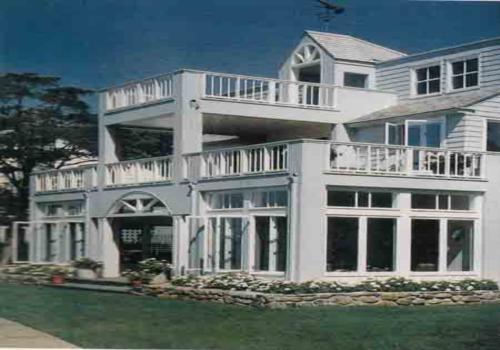 住宅位于長島的北岸,新房主是一對有成年兒女的夫婦,而且客人很多,經(jīng)常開晚會。住宅建筑面積為300㎡,是美國木構(gòu)建筑風(fēng)格,形態(tài)豐富而細(xì)膩。在立面處理上,把漆過的雪松披疊板包在新結(jié)構(gòu)的外面,使其與舊建筑在色彩、質(zhì)感和肌理上均有所區(qū)別。