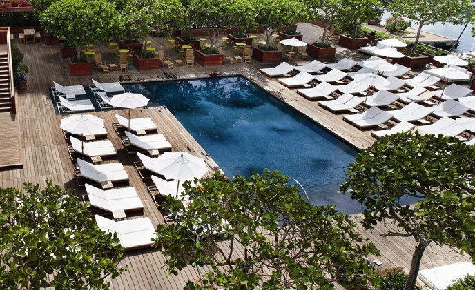 客房仍舊選用低調(diào)的顏色,以干凈的白色和淺棕色為裝飾,并通過該大量的柚木百葉窗和在地板上鋪滿地毯來強(qiáng)調(diào)自然的色調(diào)。簇狀的床頭板設(shè)計(jì)、輕松休閑的長(zhǎng)廊,以及白色的被褥共同營(yíng)造了一個(gè)柔軟的性感空間 。