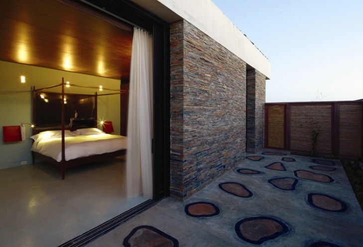 主屋兩邊是六間小屋,每間小屋擁有兩到三間臥室和私家花園。每間小屋都設(shè)有一個(gè)火爐 、布置獨(dú)特的室內(nèi)藝術(shù)裝飾品。這些小屋充分結(jié)合了室內(nèi)空間,就好像一扇扇可伸縮的窗戶一般,深入私家花園內(nèi)。