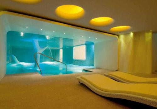 水池的形狀沒有定制,從使用角度看,以接近方形者最好用。從觀感上說,也不妨設(shè)計成圓的、橢圓的或更加自由的。有些規(guī)模較大的洗浴中心,常常圍繞水池設(shè)計一些疊瀑、壁泉、山石等景觀,于是,這些水池便有了更大的觀賞。