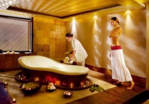 整個(gè)SPA共兩層,其內(nèi)設(shè)有23個(gè)療養(yǎng)區(qū)域。其中包括帶有普通房間的標(biāo)準(zhǔn)套房、中級(jí)套房、東方療養(yǎng)室、提供室外水療和私人個(gè)性化服務(wù)的雙人或多人療養(yǎng)室、美發(fā)沙龍,以及Cleopatra浴、Caldarium?。_馬傳統(tǒng)蒸汽浴)、傳統(tǒng)芬蘭蒸汽浴、桑拿浴、冷水池和男女更衣室等。