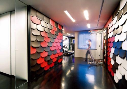 您現(xiàn)在所在的位置:首頁>洗浴設(shè)計(jì)>正文?。穑颍椋觯幔簦濉。螅穑嵝蓍e會(huì)所設(shè)計(jì)針對房型格局的特征,健身區(qū)與療養(yǎng)區(qū)分別被置于兩個(gè)獨(dú)立樓層。特制的墻壁表面是由乙烯基面料作為襯面的模塊拼貼而成,使人聯(lián)想到蛇皮,蜿蜒的墻壁突出了健身區(qū)長線型的結(jié)構(gòu)。兩側(cè)覆有裝飾墊的墻體延伸了室內(nèi)的長度,在視覺上增大了空間感。這些墊子的另一個(gè)優(yōu)點(diǎn)是能夠降低健身中心播放的音樂的噪音強(qiáng)度。