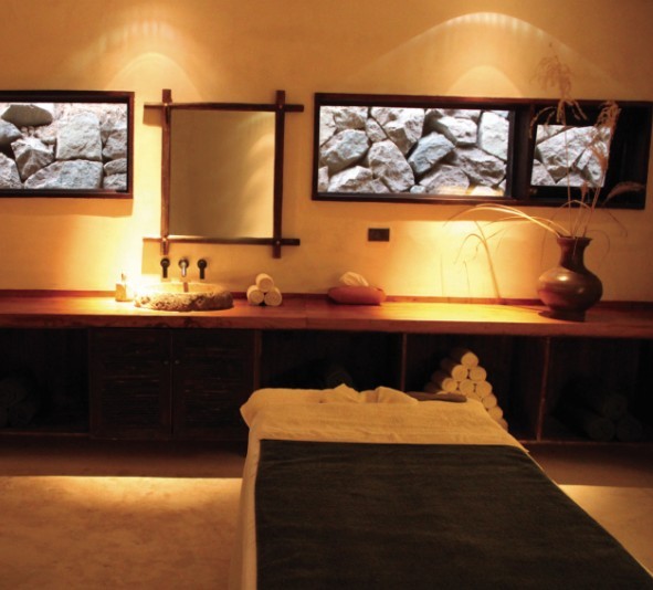 度假水療洗浴中心內(nèi)擁有占地750m的養(yǎng)生水療中心中心的l 5間理療室設(shè)于竹林內(nèi)的高腳屋之中,在竹影婆娑下更顯寧?kù)o安謐。裸心谷更設(shè)有一個(gè)1000m的會(huì)議中心Indaba(在非洲語(yǔ)中意為首腦集會(huì)),擁有8間多功能會(huì)議廳和一個(gè)分別俯瞰著竹林和水庫(kù)的大型平臺(tái)。