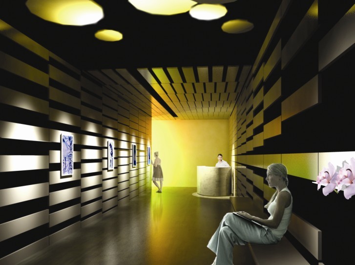 在空間中設(shè)置有趣的視準(zhǔn)線也是很重要的。這有利于讓洗浴中心成為一個(gè)緊密結(jié)合的整體,也有助于客人了解洗浴中心的其他內(nèi)容。另外創(chuàng)造最初設(shè)計(jì)理念時(shí),傾聽(tīng)這棟建筑也是重要的。每一個(gè)空間都需要根據(jù)它的自然光線、大小、建筑風(fēng)格區(qū)別對(duì)待。