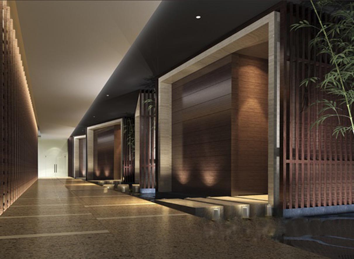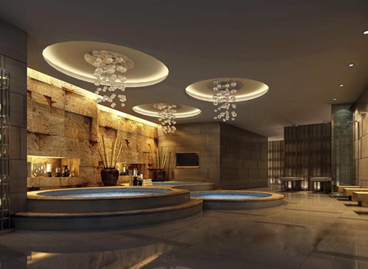 本會(huì)所以“娛樂生活”為定位,講究空間的層次感和精致的細(xì)節(jié),所以本方案的顧客先進(jìn)入前廳利用過度空間來會(huì)所烘托氣氛,再從左面進(jìn)入大堂給人豁然開朗,別有洞天的感覺。前廳的右邊是一個(gè)水面上兩層挑空的現(xiàn)代“亭臺(tái)水閣”造景。