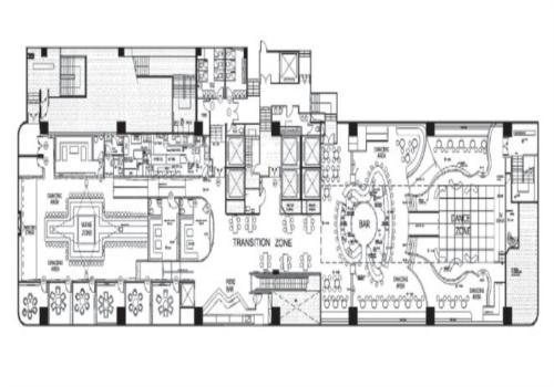 ?。茫欤酰狻。疲?strong>俱樂(lè)部設(shè)計(jì)采用不同色調(diào)的藍(lán)光打出各種各樣的聲波圖案,凸顯出俱樂(lè)部的品牌特色。無(wú)形的音樂(lè)元素,如節(jié)奏、拍子和音調(diào),轉(zhuǎn)化成有形的空間元素,如線、平面、形狀和層次。