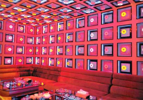 房間設計別具一格,采用了藝術的木雕花做墻面,摩天輪般的天花,猶如繁星的百面水晶球,整體效果非常的另類。
