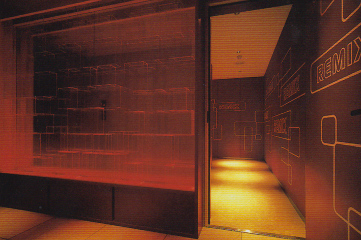 設(shè)計師將熱情的紅和清爽的白作為關(guān)鍵色。在墻面堆砌起透明壓克力塊,并用鏡子和燈光擴展室內(nèi)的寬度,旨在以此形成明銳的效果,打造出具有存在感的“從日常獲得解放的裝置